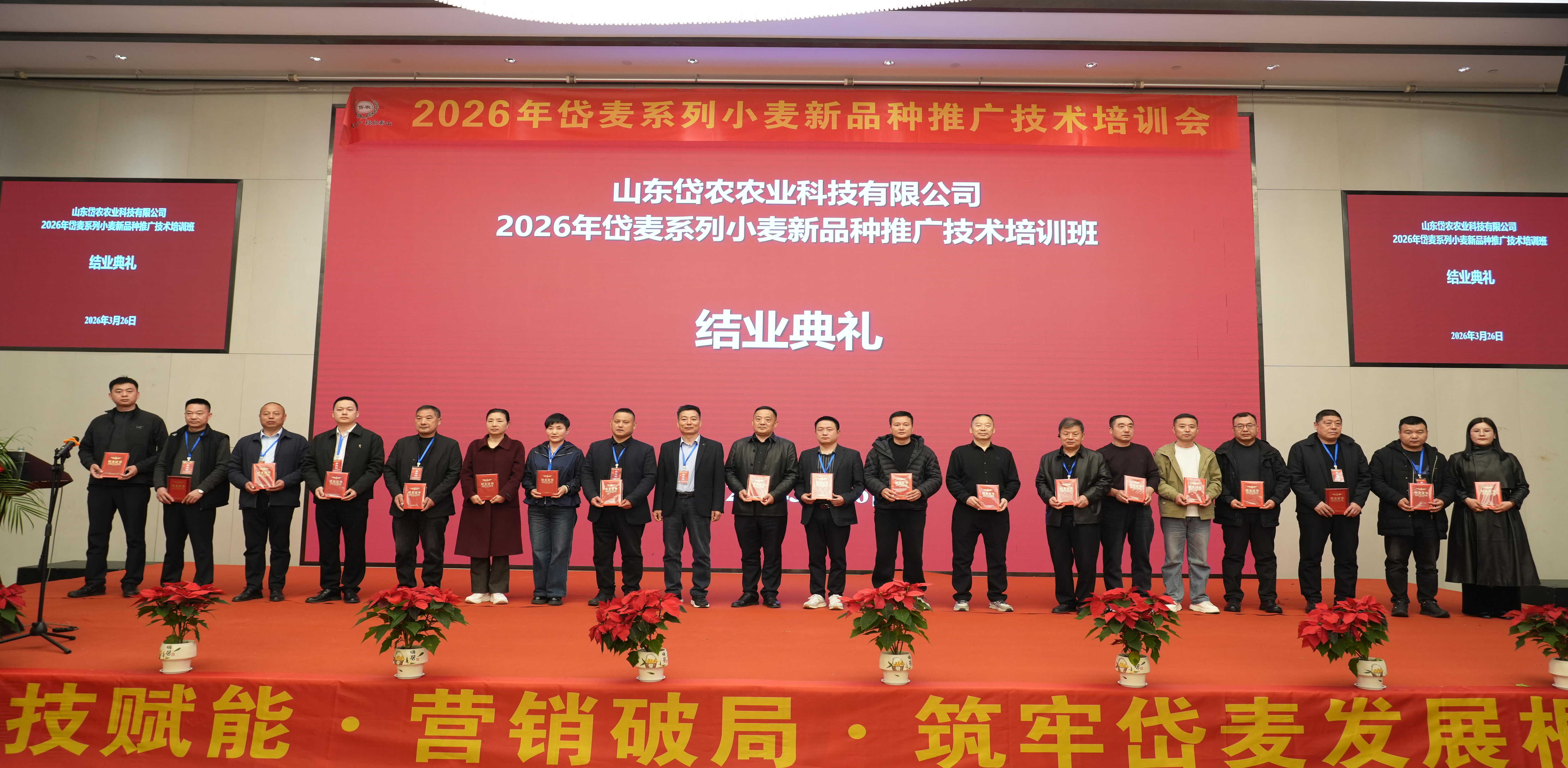 3月24日至26日,山东岱农农业科技有限公司岱麦系列小麦新品种推广技术培训会在安徽萧县召开。本次培训会议以“深化服务品质、提升专业技能、促进交流协作、凝聚岱麦共识”为核心目标,旨在为小麦产业高质量升级注入强劲动能。自岱麦系列品种及品牌推向市场以来,凭借卓越的品种优势与良好市场口碑,推广种植面积连年稳步增长。其中,众岱100、岱麦366两个“双国审”小麦品种表现尤为突出:2025年秋播种植面积分别突破500万亩、100万亩,销量同步突破1亿斤、4千万斤。如今,“岱麦”品牌已成长为小麦领域颇具影响力的优秀品牌,深受广大种植户信赖。